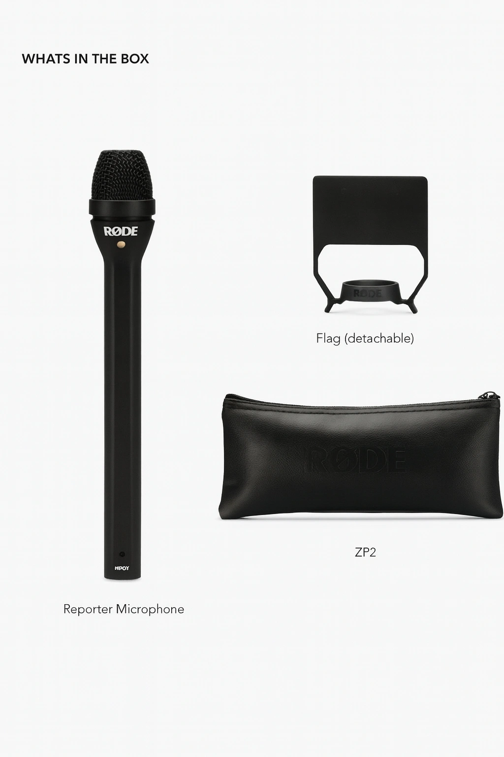 - In the box: Reporter mic, detachable mic flag, ZP2 zip pouch
